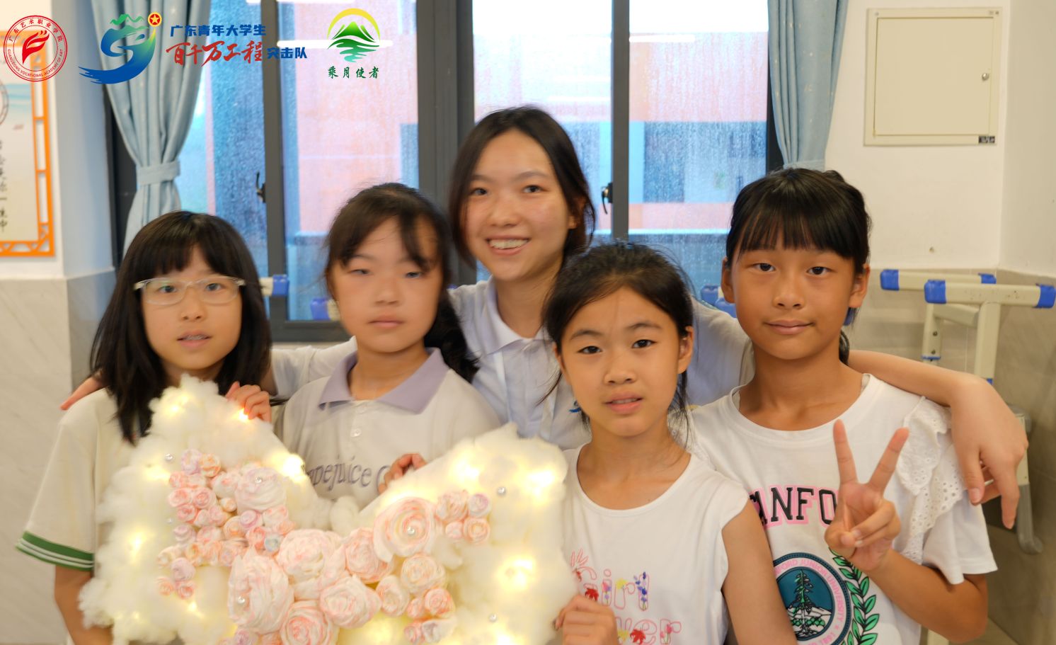 图2 实践队成员指导孩子们制作的“云朵灯”