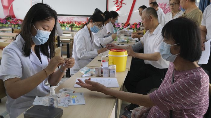 在此次三下乡活动中,科技特派力量成为提升服务质量的关键支撑。服务团队充分依托医学院的科技特派员资源,将便携式智能血压计、血糖仪及幽门螺旋杆菌快速检测试剂盒等专业设备带进各个服务点。不论是在城区社区的活动中心,还是偏远连队的文化站,队员们始终以专业严谨的态度,为络绎前来的各族群众提供免费、高效且准确的健康筛查。