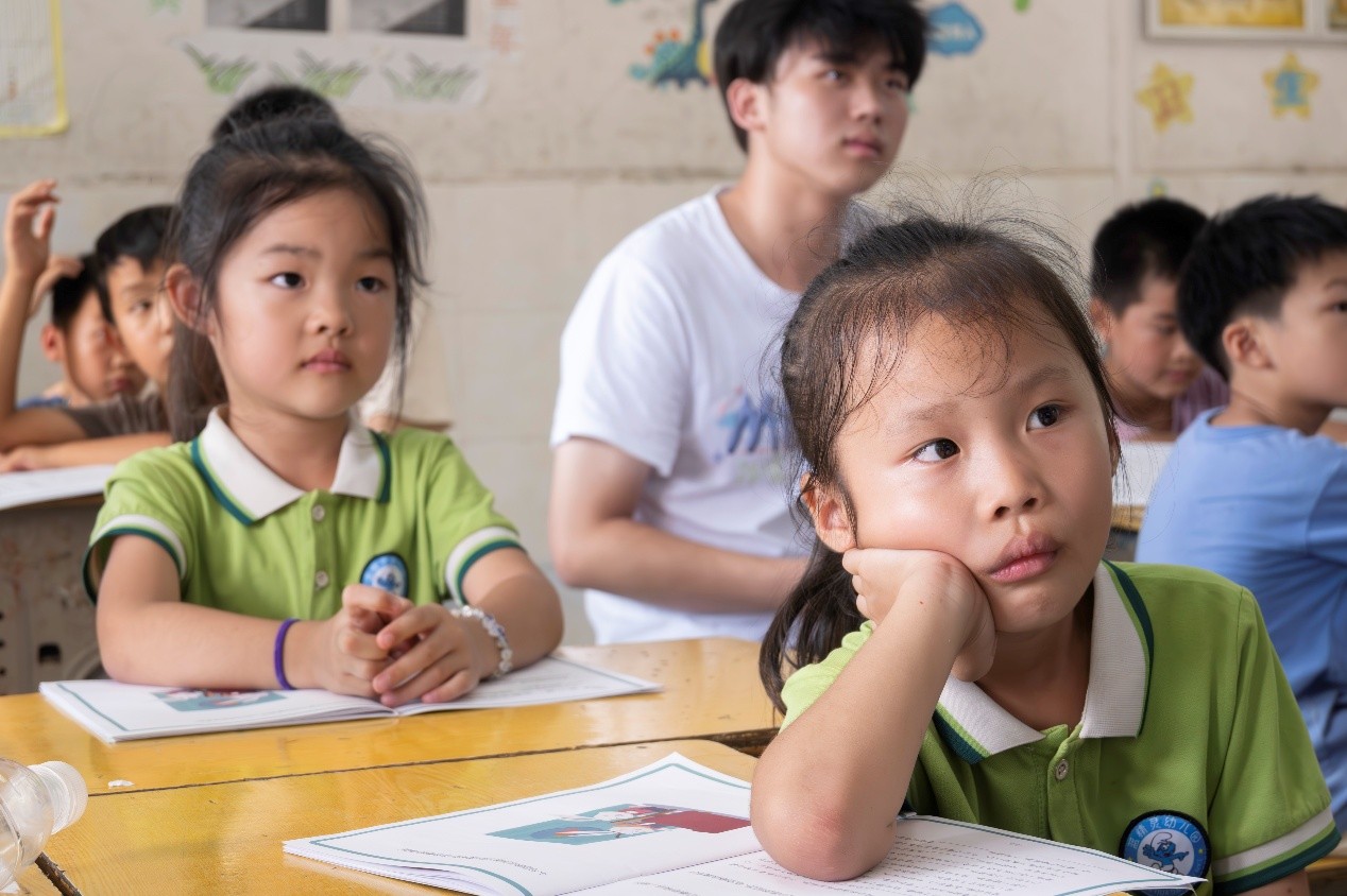 活动伊始,“营舞”环节中,师生共舞,增进了彼此距离。随后开展的 “胜进败退小游戏”,创新融合传统体育竞技与趣味猜拳规则,学生们在组队比拼中既要全力争取胜利,又需默契配合同伴,直观体会到竞争与合作的双重意义。活动期间,志愿者还组织学生观看励志动画电影《寻梦环游记》,引导孩子们在剧情共鸣中思考梦想的价值与家庭的温暖,让情感教育自然融入观影体验。“彩虹桥” 绘画环节充分激发学生的艺术创造力,孩子们拿起画笔,以丰富色彩将心中对美好世界的愿景化作斑斓画作;趣味问答环节则通过生活化、知识性的题目展开比拼,既检验了学生的知识储备,也锻炼了他们的临场反应能力。“情绪!情绪!还是情绪!” 主题板块以生动的情景模拟为载体 —— 志愿者通过角色扮演还原日常情绪场景,引导学生认识不同情绪的特点,逐步掌握管理情绪的小方法,帮助他们养成积极向上的心态。考虑到山区学生的视野需求,活动特别设置 “看看外面的世界” 环节,借助影像、故事分享等形式,为孩子们打开了解城市风貌、多元文化的窗口,有效拓宽了他们的认知边界。