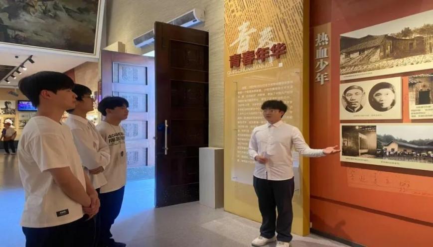 7月9日,实践团赴毛主席视察成安纪念馆,开展社会实践活动。实践团成员站在毛主席视察成安纪念馆的展示墙前,目光坚定,神情专注,向参观者讲述着那段珍贵历史背后蕴含的伟大建党精神。