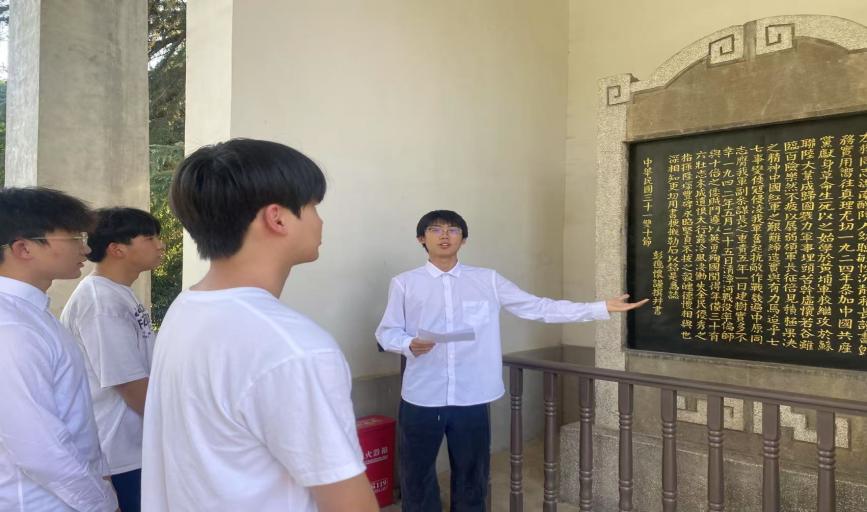 访谈团成员为晋冀鲁豫烈士陵园游客讲解左权将军墓,通过先辈们的英雄事迹,让访谈团深刻体会到“不怕牺牲,英勇斗争”的深刻含义。同时访谈团以烈士陵园这一庄重而严肃的红色基地,宣扬五四精神文化,在陵园里宣讲《五四五四》与《我们的精神之旅》在先辈的见证下,展现五四青年的蓬勃朝气让红色火炬延绵不绝,让吾辈青年要“坚持真理,坚守理想”。