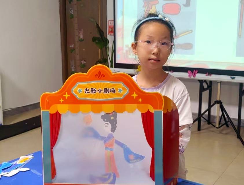 随后,活动进入了实践体验环节。志愿者们根据当地文化特色和自身专业特长,开设了多个非遗工坊课堂:“巧手生花”剪纸工坊里,红纸在指尖折叠翻转,银剪穿梭间,孩子们从最简单的窗花学起,渐渐能剪出灵动的动物与繁复的花卉;一幅幅稚嫩却充满童趣的作品在他们手中诞生,喜悦如春阳般漾开在每个孩子的脸上。随后,“光影传奇”皮影工坊点亮了想象的世界:志愿者们演示皮影操作之后,孩子们分组协作,为皮影涂抹绚烂色彩,亲手操纵人物演绎《孙悟空三打白骨精》的经典片段——白色幕布上光影摇曳,古老故事焕发出崭新的活力。