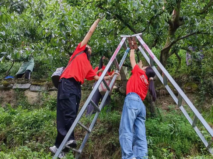 茂县的青山绿水间,藏着特色农业的发展密码。8月14日,实践队深入青脆李基地、花椒地和瑞雪苹果种植区,与农户、种植户面对面交流。在青脆李基地,现代化种植技术让果实品质稳步提升,但收购商却面临着运输成本高、销售渠道窄的难题。“可以借助直播电商东风,让青年返乡人才牵头,把果园变成‘直播间’。”队员们结合专业知识,提出“农旅融合+电商推广”的建议,希望通过打造采摘体验游、拓展线上销售渠道等方式,破解销售困境。并结合当地特色为青脆李量身设计了一款包装盒。这份充满巧思的设计得到了团委书记的认可,认为其兼具美观与实用性,目前已交由茂县文旅局,助力该地区青脆李的推广宣传,让这份来自田间的清甜被更多人知晓。
