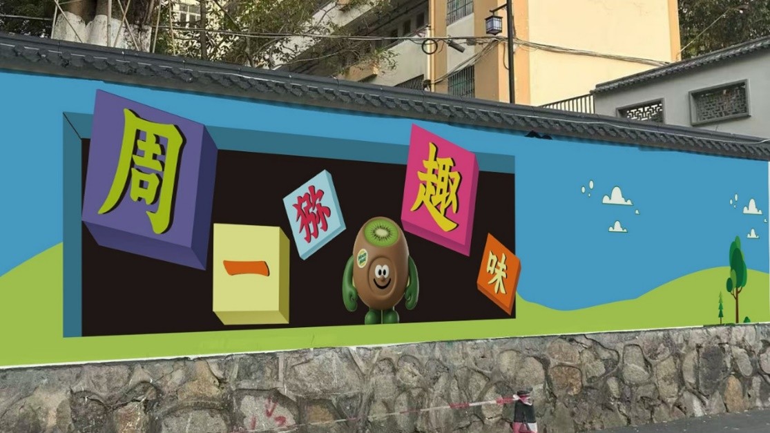师生共研猕猴桃墙绘设计助力周一村三下乡活动落地