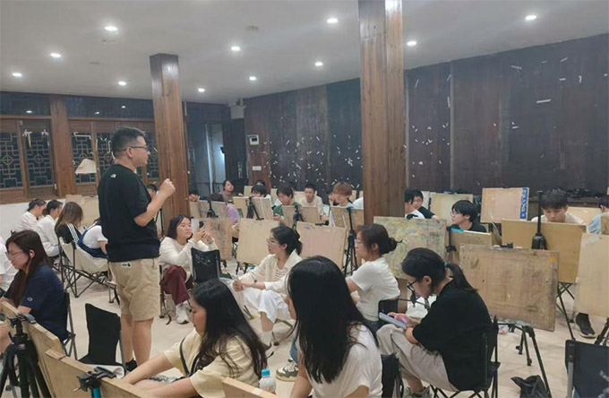 老师为学生讲解写生要领(南京航空航天大学吴文雨摄)