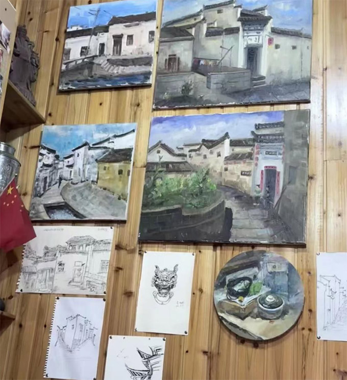 宏村写生展示(南京航空航天大学郑文淑摄)