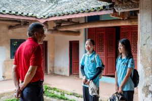 图为文物管护员姚良丰先生为突击队队员们介绍宝善居的历史。陈欣 摄
