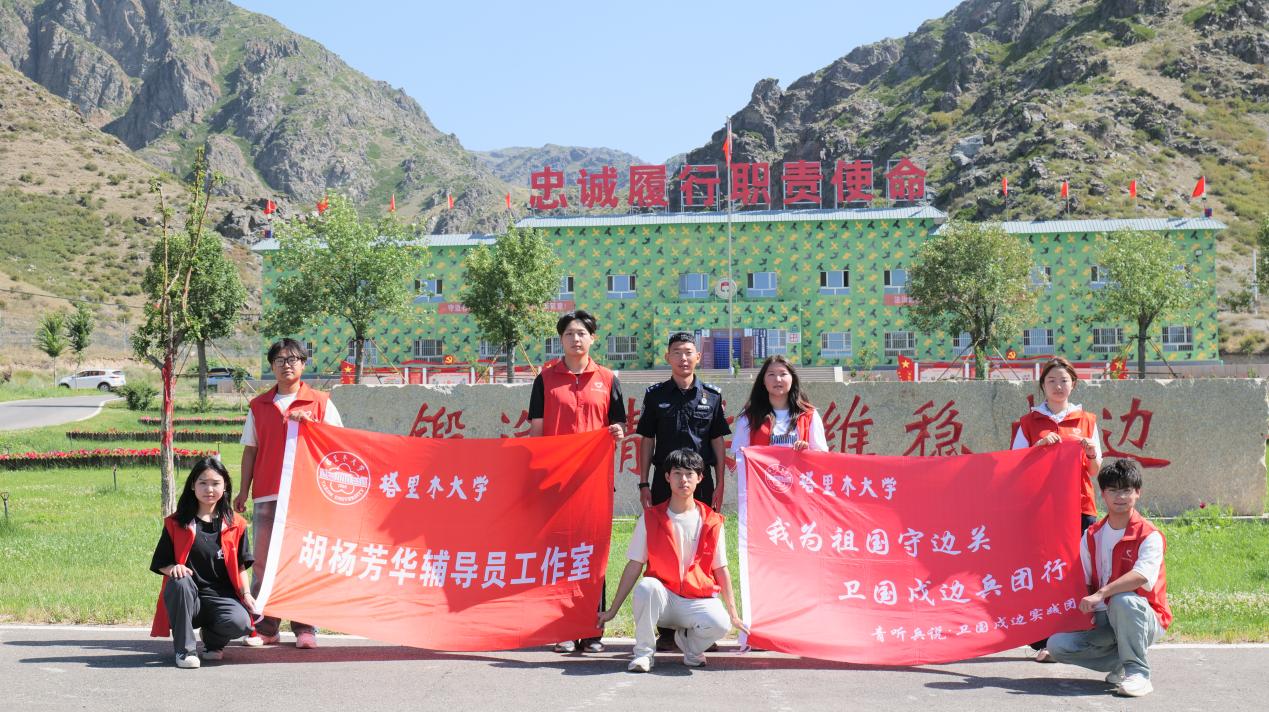 图为实践团成员在八十一团塔拉夏沟边境警务站与站长合影留念 (摄/李鑫)