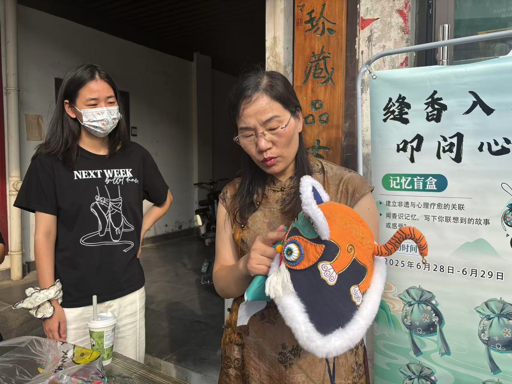 9月初,实践团前往隋唐古镇,参与杨家香包、虎头帽非遗传承人专题分享会。会上,传承人结合自身从业经历与群众反馈,详细讲述两项非遗对情绪调节、文化认同的实际影响:“很多体验者说,穿针引线做香包时,心里的烦躁会慢慢平复;家长给孩子戴虎头帽时,会主动了解背后的吉祥寓意,这让传统文化的根扎得更牢。”