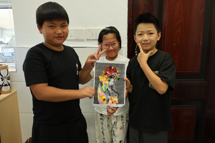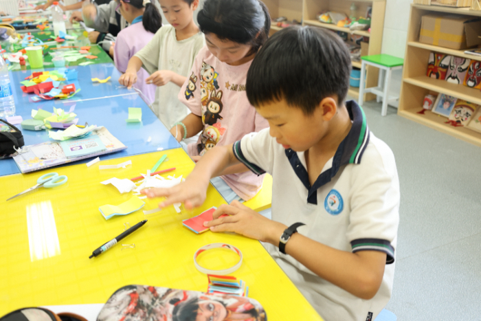 课堂上,队员们生动讲述婺剧历史,孩子们在积极的互动问答中,对家乡的这一文化瑰宝有了更深入的了解,自豪感也油然而生。随后,孩子们拿起缤纷的彩纸,在手指间翻飞、卷曲、粘贴成一幅幅精美的婺剧衍纸画。这不仅是一次手工实践,更是一次沉浸式的文化体验,让古老的婺剧艺术以新颖有趣的方式在孩子们心中生根发芽。