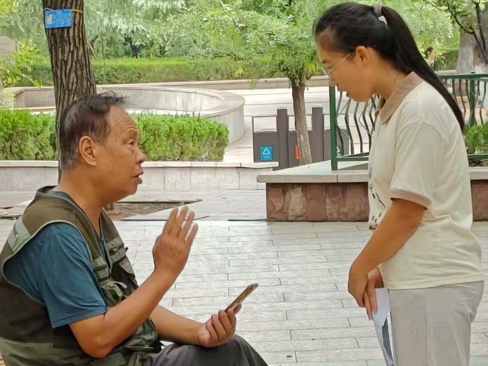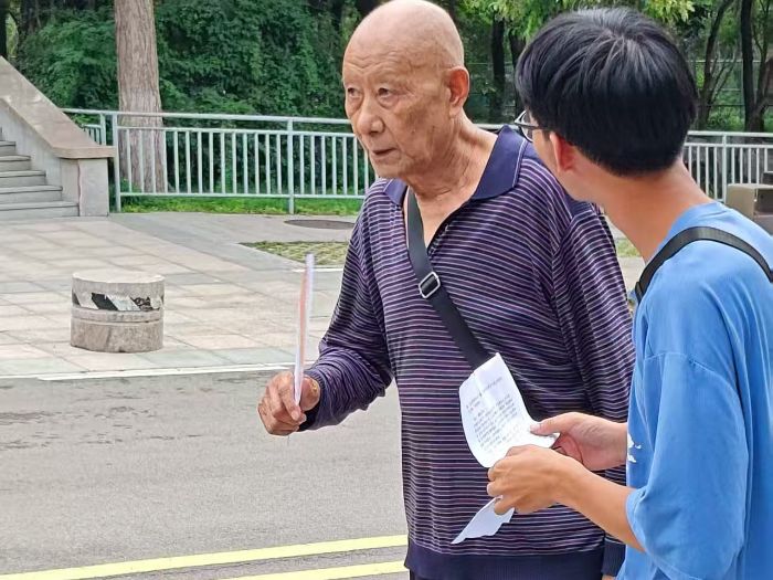 图为实践团成员采访老党员的革命感悟 钱宁盈 供图