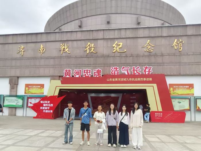 图为实践团成员在济南战役纪念馆前合影 钱宁盈 供图
