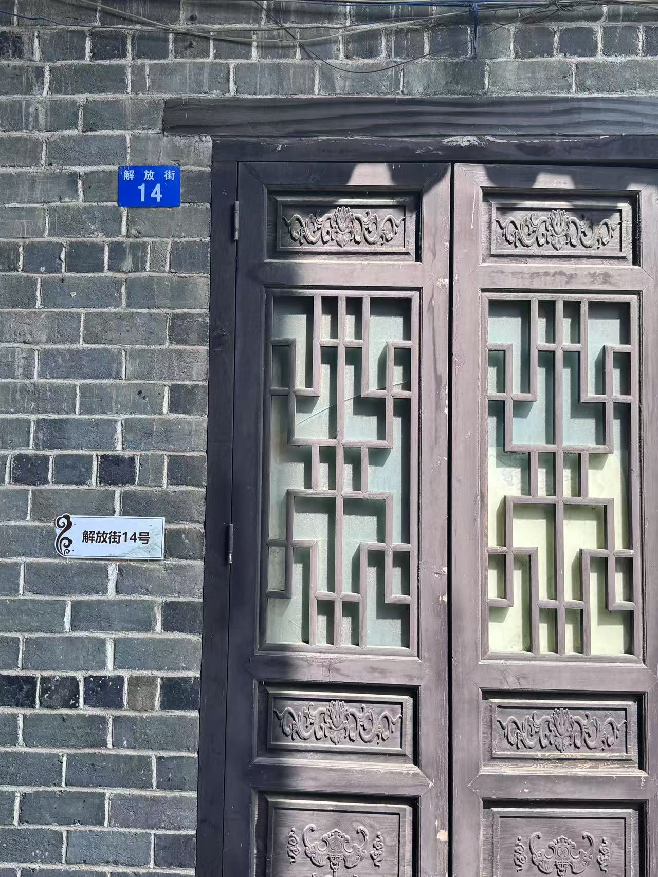 午后,阳光透过枝叶,洒在青石板路上。实践团成员踱步其间,开启与杨美民居的深度对话。斑驳砖墙如时光的画布,是自然绘上的笔触;雕花木门似沉默的老者,精致纹样里,藏着家族兴衰、邻里故事。“江西镇扬美村新时代文明实践站” 的牌匾,在古建墙面上格外醒目,现代文明与历史底蕴奇妙交融;“解放街14号” 的蓝色门牌,静静挂在青砖旁,像一把小小的钥匙,打开关于这条街道过往的想象。