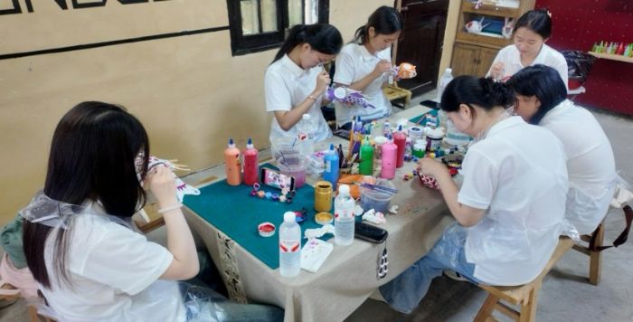 图3 团队成员在黟县宏村体验省级非遗鱼灯制作