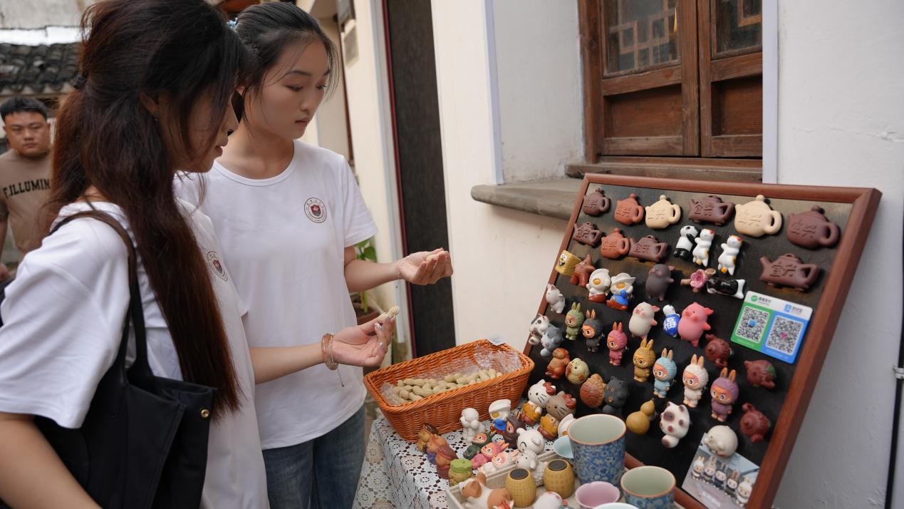 从古老的手工作坊走向现代的街市,实践团成员来到古南街实地考察。古南街始于宋,因蜀山陶土聚匠人成制陶商街;明清到达黄金时代。实践团成员走访了大师故居、手工作坊,还有文创店等新的商业模式。实践团成员还走访了1958年成立现在已经从紫砂壶制作工厂转型为文旅景区的陶二厂。陶二厂既保留旧窑炉讲述历史,也设置了现代化展厅陈列紫砂文创。古老的紫砂文化在新时代也滋养着丁蜀镇的文化与经济,迸发强劲创新活力。实践团在丁蜀镇建立长效机制,与前墅村、三洞桥村等村落建立长期合作关系。基于调研成果和当地文化资源,实践团成员们为当地商铺提供发展和创新意见,比如多与紫砂陶瓷文化IP绑定,在主流短视频平台上开设团购等,加大宣传力度。定期组织学生开展文化调研和实践活动,持续为乡村文化建设提供支持。