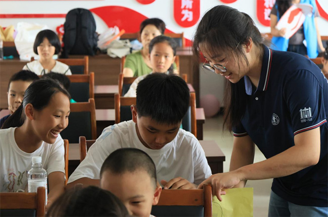 图3:实践团成员为积极回答问题的小朋友颁发奖品