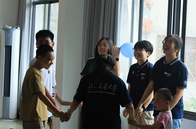 图1:北京交通大学实践团成员与中南林业科技大学实践团及小朋友们合影