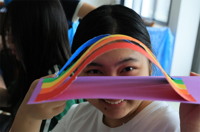 图4:实践团成员展示手工制作的“彩虹桥”