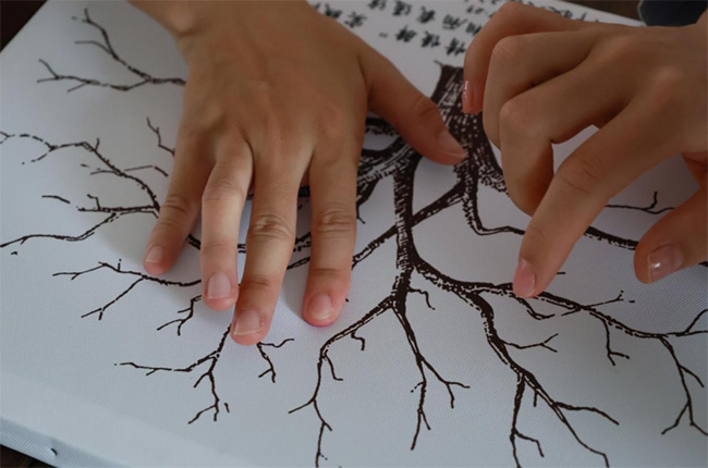 在活动的尾声部分,实践团成员与小朋友们共同完成了手印画创作。在温馨融洽的氛围中,大家一同用手蘸取颜料,将五彩的手印层层叠印在画布之上,共同构成一棵枝繁叶茂、生机盎然的参天大树。每一个彩色手印代表一个梦想的印记,也象征孩子们如枝叶般茁壮成长、向上延伸的未来。