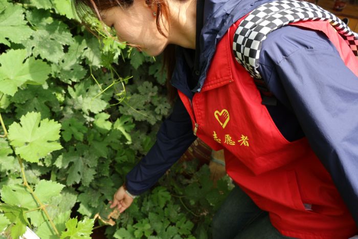 此图为团队在连队居民家中观察葡萄叶病害情况 董乔乔供图