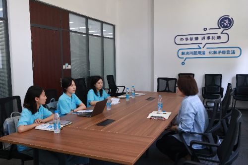 调研团还走进苏州市司法局和苏州市中级人民法院,构建对苏州调解工作的宏观理解。在市司法局,调研团与法治促进处孙处长围绕“苏州市社会风险治理中的调解机制”这一核心议题进行深入座谈,双方就调解工作现状、特色模式创新、大调解体系构建、多元调解融合发展等关键问题展开了热烈而富有成效的探讨。走进苏州市中级人民法院立案诉服大厅,团队成员亲身体验了低位服务台、盲文版互动指南、种类齐全的诉讼知识手册等充满人文关怀的便民举措,感受着“立案诉服集成一体”的便捷高效。通过专题影片,中院重点展示了自主研发的“苏州市社会治理司法指数一点通平台”,让青年学子们直观而震撼地触摸到了苏州基层治理的科技前沿和智慧高度。