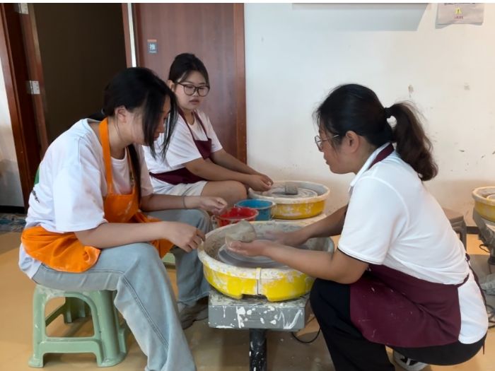 走进古朴的黑陶工坊,泥土的芬芳与历史的厚重扑面而来。同学们围站在工作台前,在传承人的悉心指导下,体验手工制陶的奇妙过程。指尖与陶土相触,推拉揉捏间,感受着黑陶穿越千年的蓬勃生命力。青年们以虔诚之心对话传统,将青春的创意融入古老技艺,完成简易的黑陶作品。